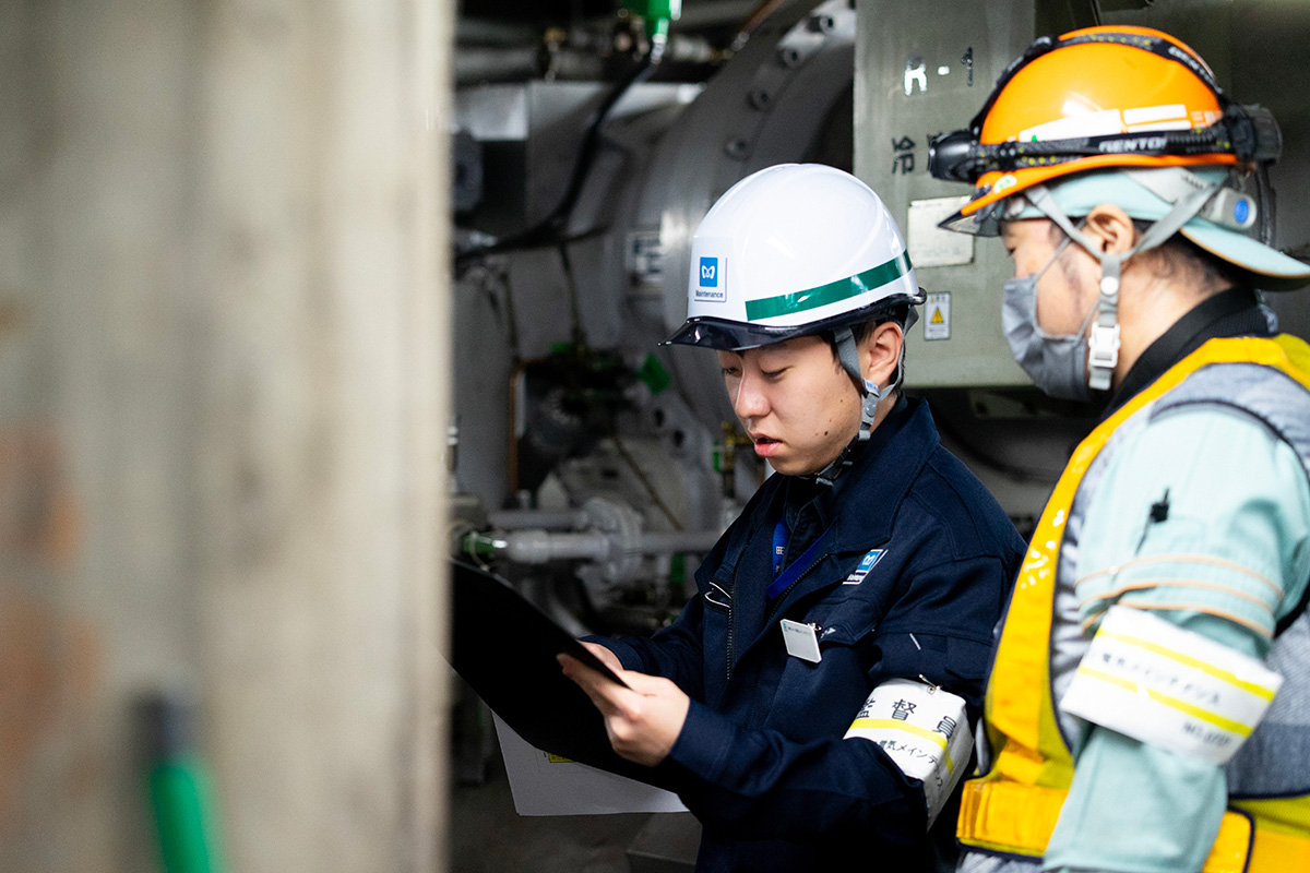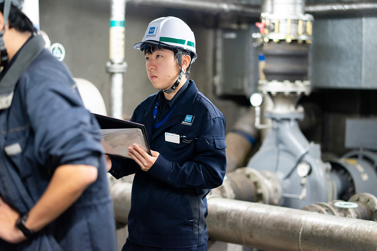 空調設備の保守管理業務を担当しています。自分の手で機械を直すような直営の作業はなく、点検・検査など各種作業が安全かつ適切に行われるよう管理、監督する仕事です。